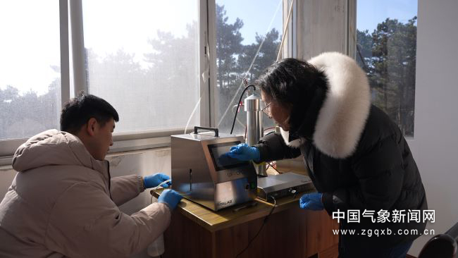 1月15日,郭丽君(右)和吴子卿(左)在仰天坪观测点做试验前准备。李根 摄影